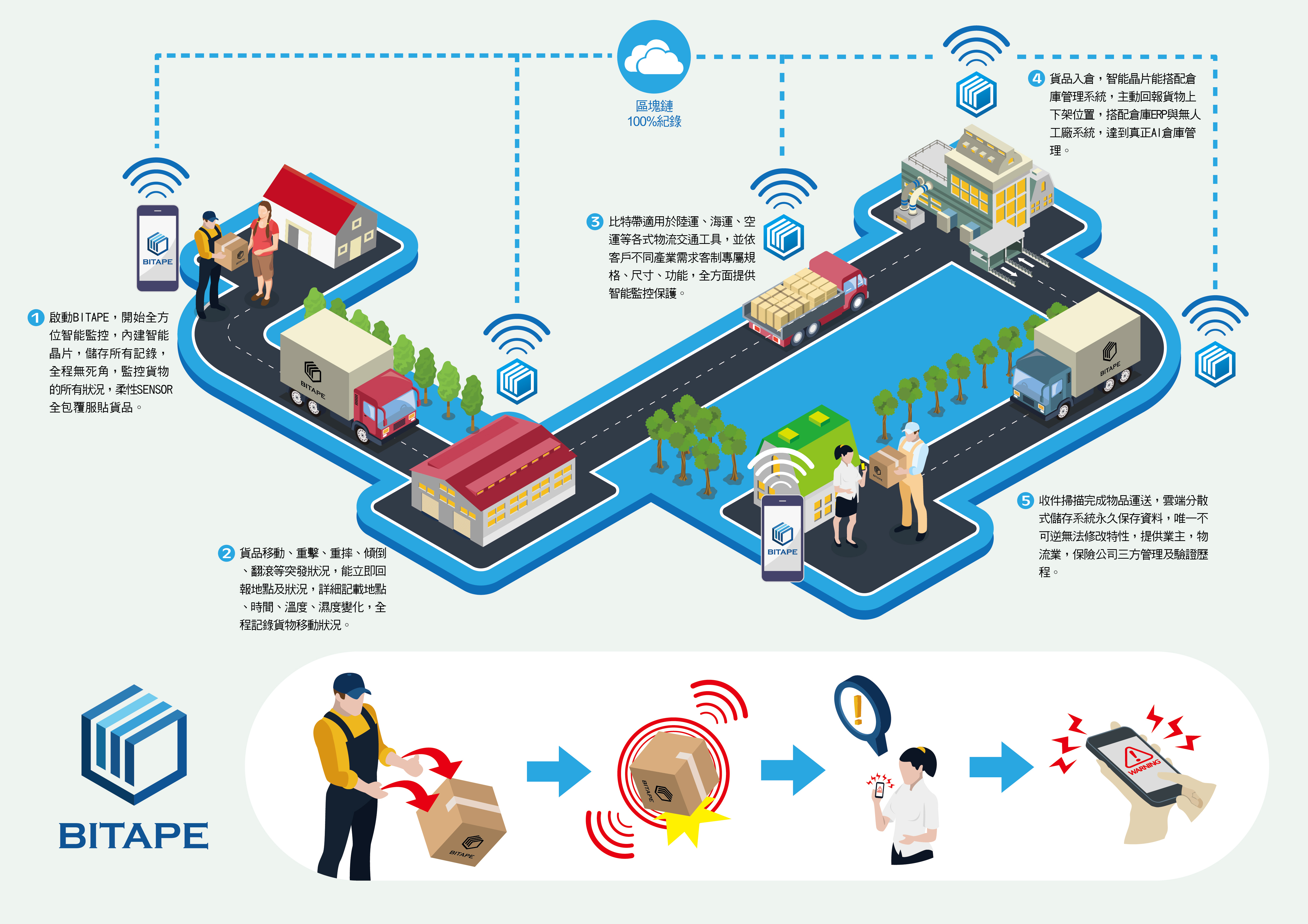 貴重 、 易碎物全程監控 , 安心配送 我們提供多樣的創新智慧物流監控系統,透過感測器、物聯網技術、區塊鏈應用的整合,幫助您解決個人和企業的商業需求。 BITAPE 特色 即時監控-隨時紀錄貨物狀況,讓您的貨物全程受保護 。 資料不可竄改-確保全程的數據資料真實性,提供您可信賴系統。資料永久保存-數據不可修改刪除,使資料紀錄得以保存追溯。提高品質管理-藉由BITAPE系統幫助企業達到物流質量管理。降低成本-協助提升配送品質,有效降低不必要的營運成本。 分享此文: 按一下即可分享至 X(在新視窗中開啟) X 按一下以分享至 Facebook(在新視窗中開啟) Facebook 喜歡 正在載入...